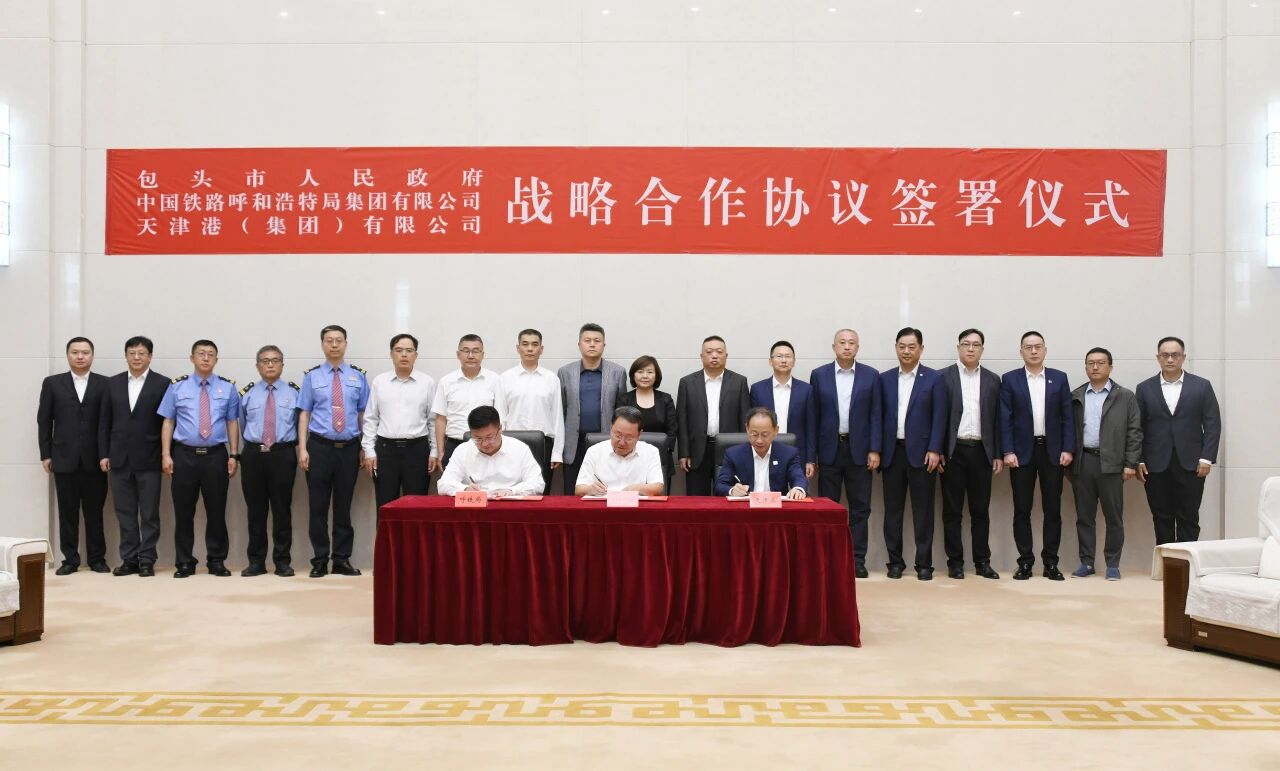 9月17日,天津港(集團)有限公司、包頭市人民政府、中國鐵路呼和浩特局集團有限公司共同簽署戰略合作框架協議,貫徹落實加快建設交通強國戰略部署,構建內蒙古中西部地區外向型物流樞紐,共同推動區域經濟實現高質量發展。
